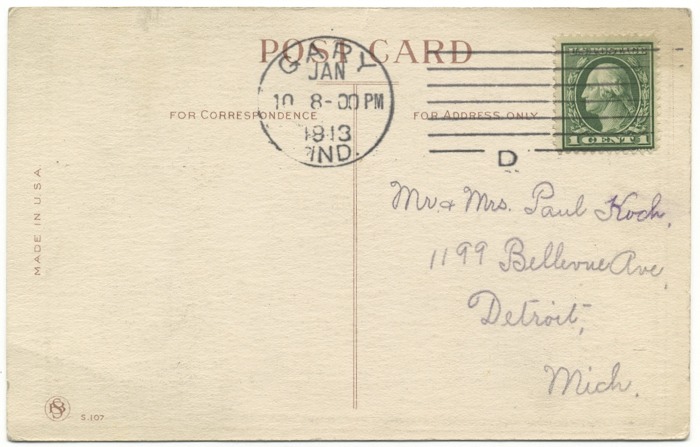 Postcard from his sister Dora Koch Kayser announcing birth of Victor Paul Kayser, January 1913.
