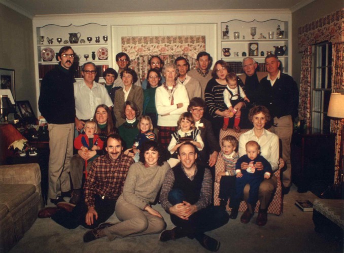 The three Matz daughters with their families, Christmas 1982, at 618 S. Park Street, Hinsdale, Illinois