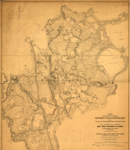 Map of the country between Monterey, Tenn: & Corinth, Miss: showing the lines of entrenchments made & the routes followed by the U.S. forces under the command of Maj. Genl. Halleck, U.S. Army, in their advance upon Corinth in May 1862: Surveyed under the direction of Col. Geo. Thom, A.D.C. & Chief of Topl. Engrs., Department of the Mississippi, by Lieuts. Fred. Schraag and C. L. Spangenberg, Asst. Topl. Engrs. and drawn by Lieut. Otto H.Matz , Asst. Topl. Engr.