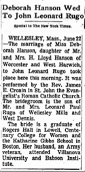 Marriage22 Jun 1961, St. John The Evangelist Church, Wellesley, Massachusetts