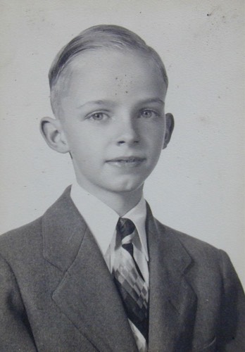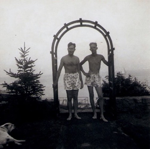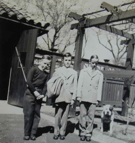 Paul on the right and “Dickie” the dog with friends at Hinckley Road.