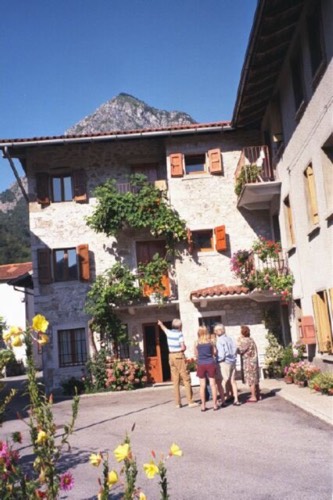 August 1999 - Beppe Vallar, Lucy and Vicki Rugo and Beatrice Menegon Vallar in front of the Vallar family home in Inglagna, Tramonti di Sopra.
