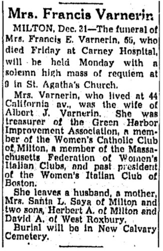 Her niece, Marilyn Varnerin in front. From a group photo of women attending a Mass in the North End with priests arrived by ship from Italy, "probably 1948 or earlier" according to Robert D. Rugo, who was in the photo of men. Photo provided by Louise Varnerin DiTullio.