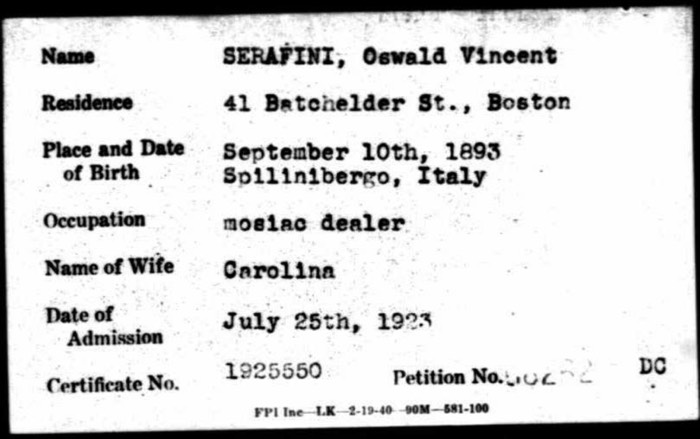 Oswald Serafini naturalized