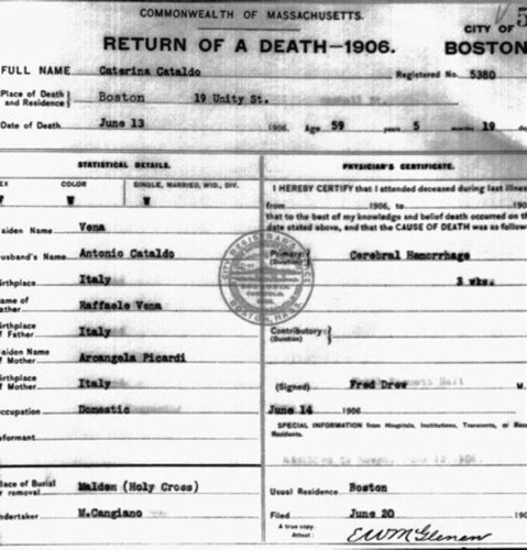 Photo from Mary Ellen Cifrino - September 2015 - reverse says Caterina -a guess that it is John’s mother in law, ca 1903 - 1906; she died three years after his marriage.
