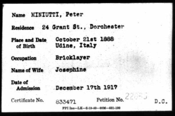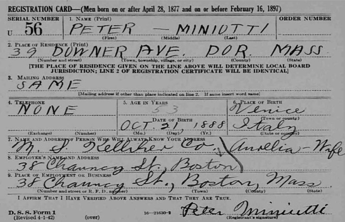 Standing from the left: Joseph V., Paul Marmai, Peter V., Annie V., Peter Miniutti, Maria V., Lawrence Rugo, Leonard V., Lawrence V.