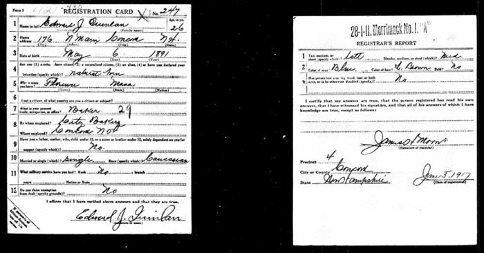 Edward Joseph Quinlan WW I draft