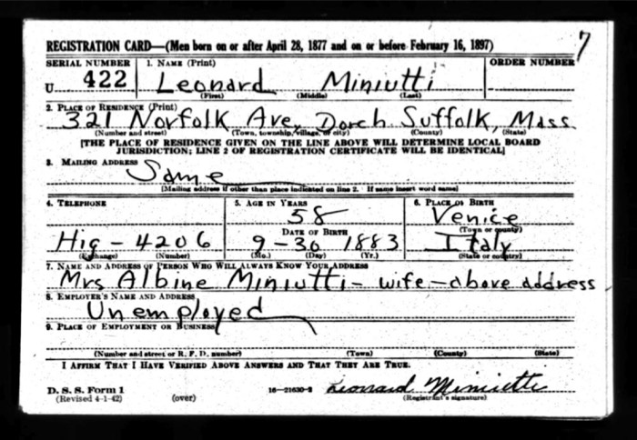 Photo taken by Falk Studio, 1139 Washington Street, Boston, Massachusetts. June 1899 marriage of Giuseppe Marmai (seated far right) to Maddalena Rugo. Standing at rear are Peter Varnerin on the left and Leonard Miniutti on the right. In front are John Varnerin, Lawrence, Santa, Joseph and Annie.