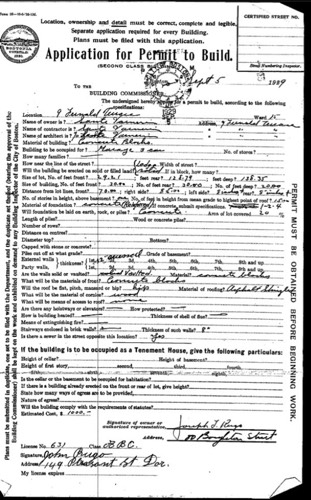 1926 permit to build a garage at his house at 9 Fernald Terrace.