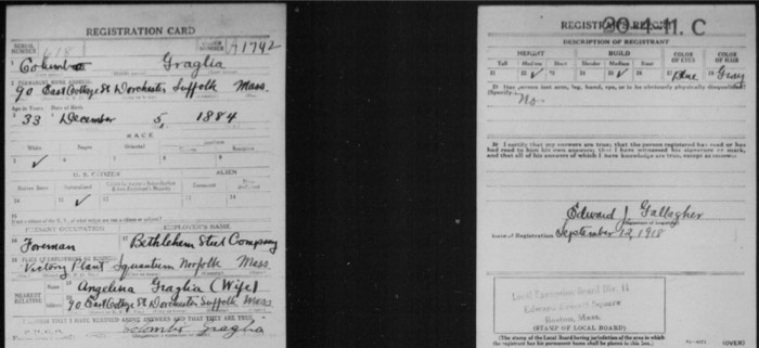 Colombo Graglia WW I draft