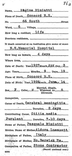Regina Miniutti death 1927