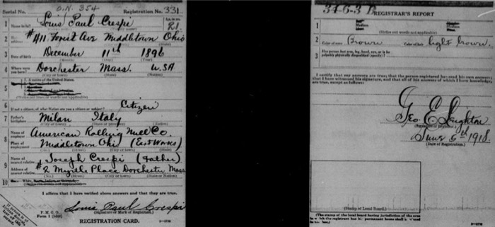 Louis Crespi WW I draft