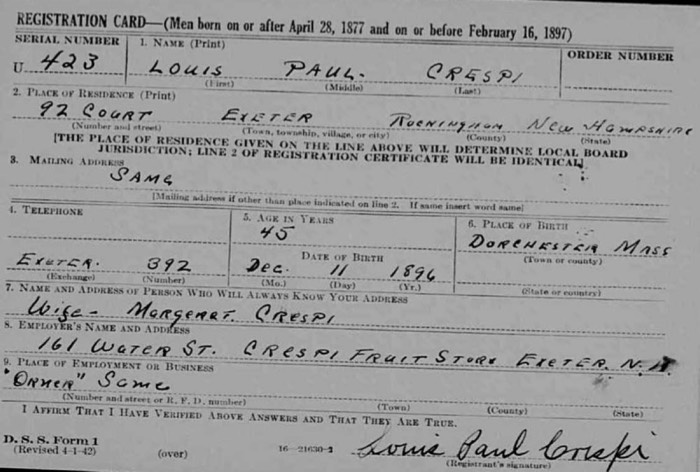 Louis Crespi WW II draft