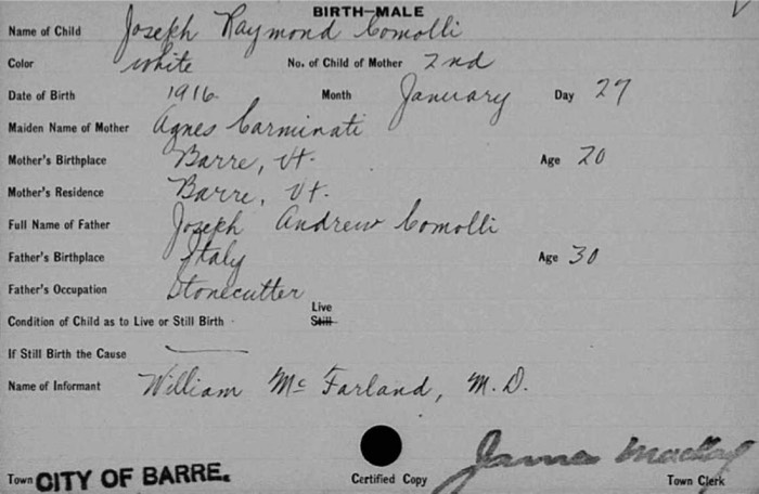 Joseph Comolli birth 1916