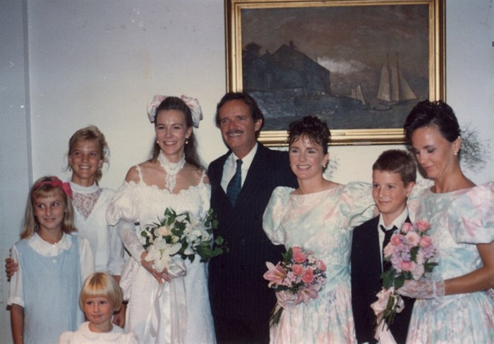 Paul on the right and “Dickie” the dog with friends at Hinckley Road.