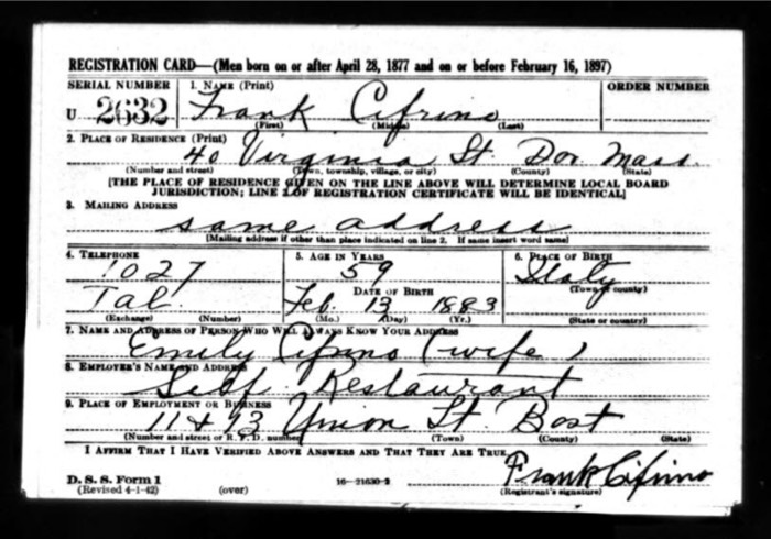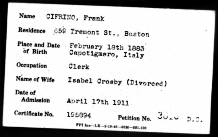 Frank Cifrino naturalized 1911