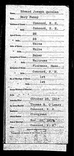 Fanny - Quinlan marriage