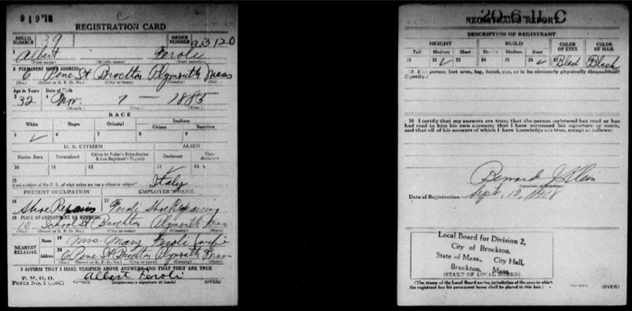 Albert Feroli draft 1918